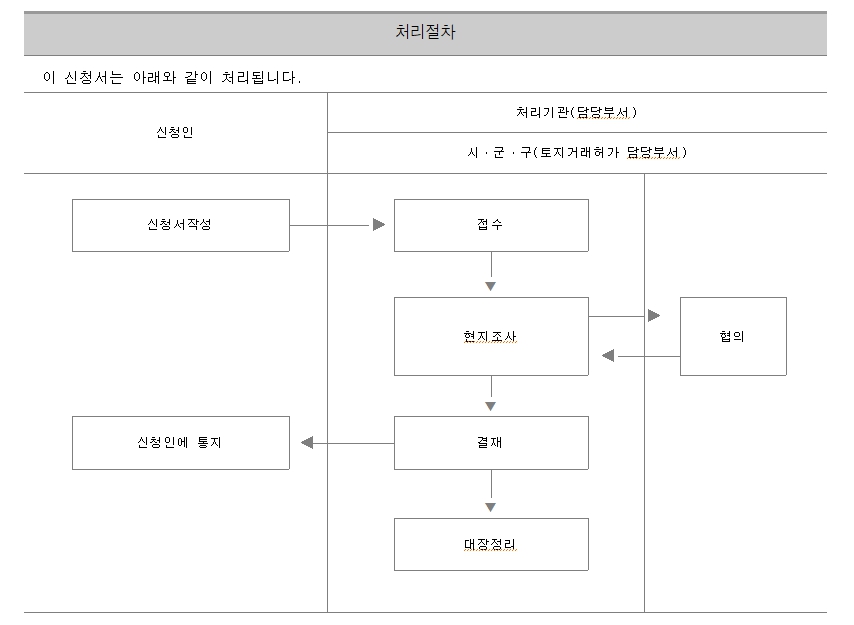 ※ 토지 이용 계획 등에는 규칙 제11조의 내용을 포함하여 작성, 허가 기준은 자기의 거주용 주택용지로 이용하려는 경우 등 법 제12조 참조